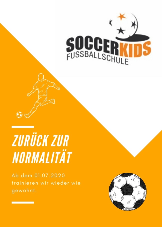 Ab dem 01.07.2021 findet unser Training wieder wie gewohnt statt. Das Fördertraining beginnt wie folgt: Montag-Donnerstag 17:00-18:30 Uhr Freitag 15:00-16:30 & 17:00-18:30 Uhr Soccerkids Kindergarten: Dienstag & Donnerstag 16:00-17:00 Uhr Wir freuen uns unsere Spieler und Mitglieder wieder zu sehen! Dein Soccerkids Team