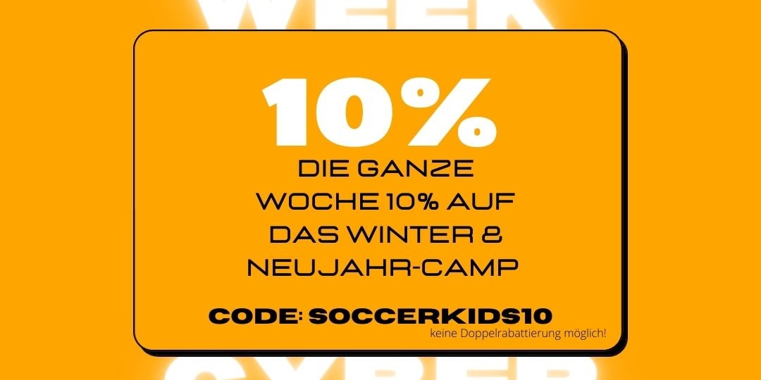 Mit dem Code SOCCERKIDS10 erhälst du nur DIESE WOCHE 10% auf deine Camp-Anmeldung für das Winter & Neujahrs-Camp!